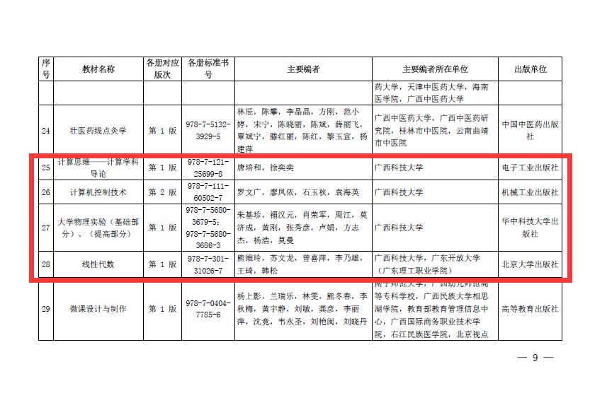 近日,广西教育厅公布了2022年广西普通本科高校优秀教材评选结果,我校唐培和教授主编的《计算思维——计算学科导论》等四部教材荣获自治区级优秀教材二等奖。本次评审,全区共评出特等奖3部、一等奖8部,二等奖33部。