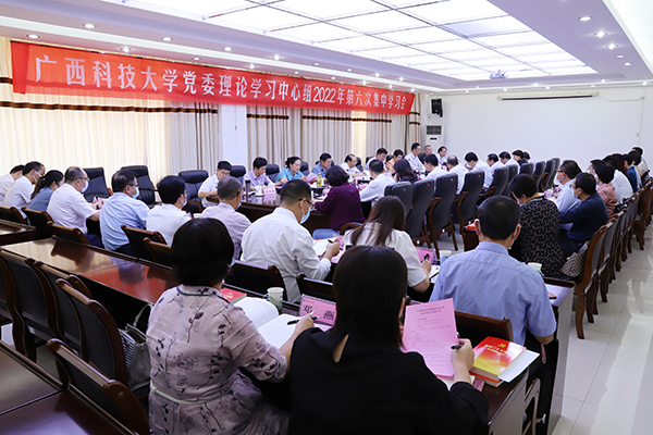 11月11日下午,学校党委理论学习中心组以“深入学习宣传贯彻党的二十大精神,踔厉笃行推动学校事业高质量发展”为主题,在文昌校区办公楼6—1会议室召开2022年第六次集中学习会,专题学习习近平总书记在中国共产党第二十次全国代表大会上的报告、习近平总书记在参加广西代表团全体会议时的重要讲话、十九届中央纪律检查委员会向中国共产党第二十次全国代表大会的工作报告、《中国共产党章程(修正案)》《中共广西壮族自治区委员会关于深入学习宣传贯彻党的二十大精神奋力开创新时代壮美广西建设新局面的决定》。自治区教育厅副厅长、党组成员李清先到会列席旁听并作指导,学校党委理论学习中心组全体成员参加会议。会议由学校党委书记赵君主持。