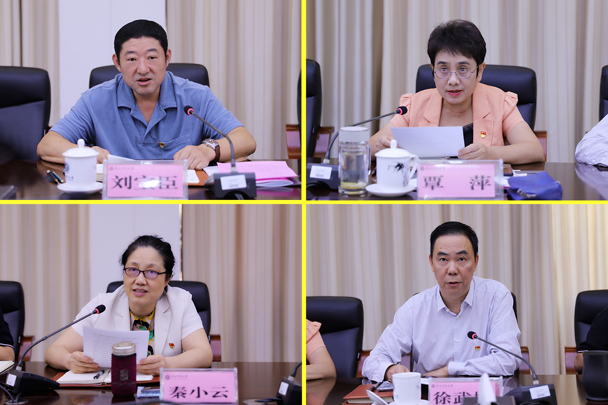 学校党委常委刘宝臣、覃萍、秦小云、徐武彬作中心发言