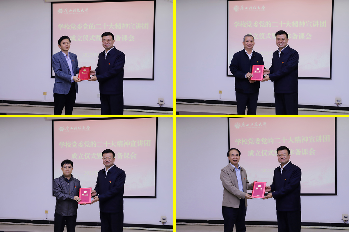 赵君要求,全体宣讲团成员要坚持结果导向,弄明白“怎么讲”。一要要心怀“国之大者”,讲出信仰信念信心,教育引导广大党员干部和师生员工旗帜鲜明讲政治,认真践行全心全意为人民服务的根本宗旨,坚定对马克思主义的信仰、对中国特色社会主义的信念、对实现中华民族伟大复兴的中国梦的信心。二要心存纪律规矩,讲出对党绝对忠诚,教育引导广大党员干部和师生员工赓续传承“忠诚”基因,当好对党忠诚的忠实传人,坚守清廉本色,涵养良好的政治生态和清正廉洁的育人环境,以对党、对学校、对单位、对师生、对家庭的无限忠诚,做新时代对党绝对忠诚的好干部。三要心系学校发展,讲出团结奋斗精神,教育引导广大党员干部和师生员工进一步树牢广西科大命运共同体意识,大力弘扬“敢为人先、百折不挠,务实创新、追求卓越”的广西科大精神,上下“一盘棋”抓工作落实、“一股劲”促进位争先、“一条心”谋学校发展,以团结奋斗精神推动学校事业高质量发展。