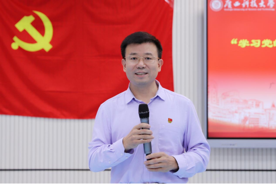 赵君对本次活动给予充分肯定,认为主题鲜明,内容丰富,是一场高质量的主题党日活动。赵君对全体与会党员提出殷切期望:一要坚定马克思主义信仰,不断提高马克思主义理论素养,自觉做社会主义核心价值观的坚定信仰者、积极传播者、模范践行者;二要主动担当作为,深入学习宣传贯彻党的二十大精神,大力弘扬广西科大精神,为学校发展贡献青春力量;三要团结协作,铸牢广西科大命运共同体意识,凝聚建设国内先进特色鲜明高水平应用型大学的磅礴力量;四要勇于奋斗,在学习实践中锤炼过硬本领,努力成为有理想、敢担当、能吃苦、肯奋斗的新时代好青年。