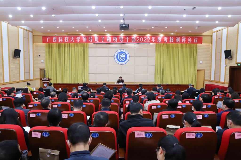3月3日上午,学校领导班子和领导干部2022年度考核测评会议在文昌校区办公楼多功能报告厅召开。自治区党委组织部四级调研员吴向阳一行到会指导,全体在柳校领导、中层正职干部和正高职称教师代表共计100余人参加会议。会议由学校党委书记赵君主持。