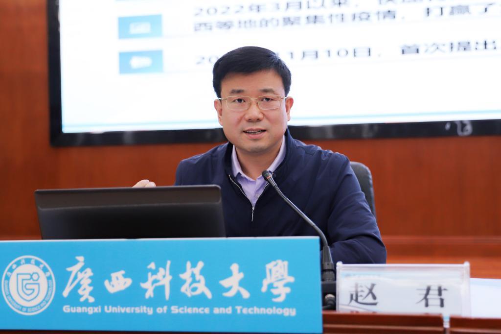 赵君以《践行青春使命担当 助力中国式现代化》为题,带领大家一起回顾了中国极不平凡的3年抗疫防疫历程,凝练了中国非凡抗疫答卷的历史启示,引导广大学子在中国式现代化道路上肩负起新时代好青年的使命担当。