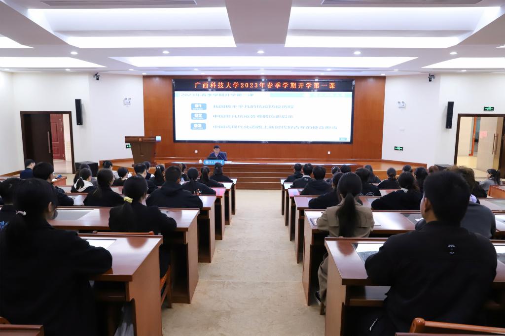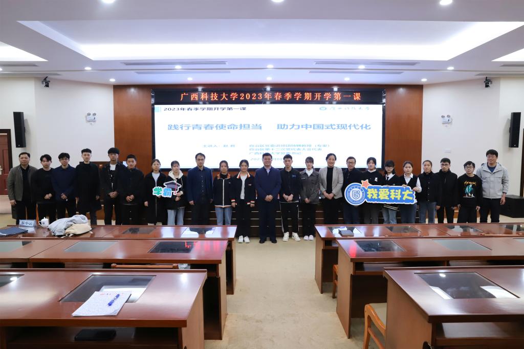 赵君号召,全体广西科大学子要更加紧密地团结在以习近平同志为核心的党中央周围,坚定不移听党话、跟党走,怀抱梦想又脚踏实地,敢想敢为又善作善成,在以中国式现代化全面推进中华民族伟大复兴的新征程上,书写无愧于历史、无愧于人民的青春华章。