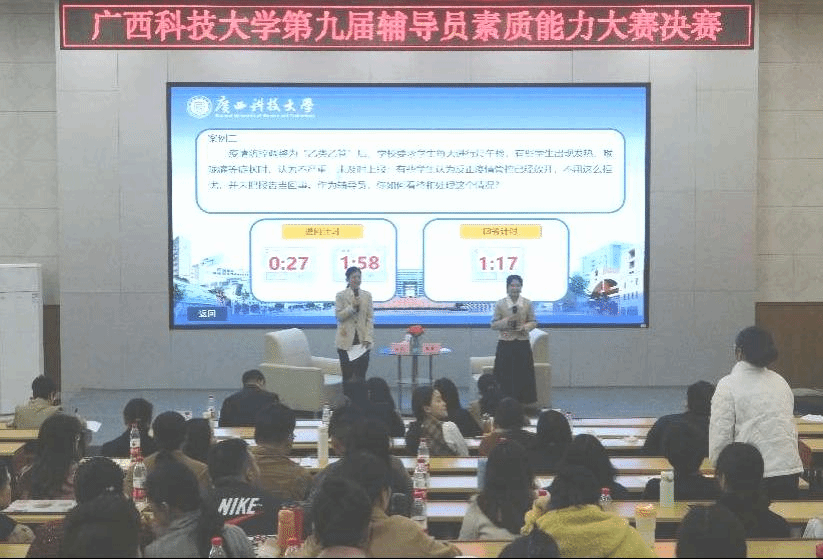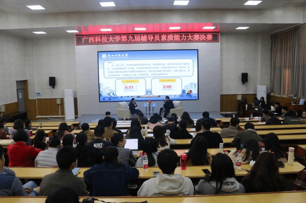 本次比赛对标全国以及广西高校辅导员素质能力大赛,分基础知识测试、谈心谈话、案例分析3个环节,重点对辅导员业务素质和专业知识等进行全方位的考察,通过以赛代练、以赛促学、以赛促建的形式,充分展现辅导员理论功底和职业素养,提升辅导员理论水平、职业能力。