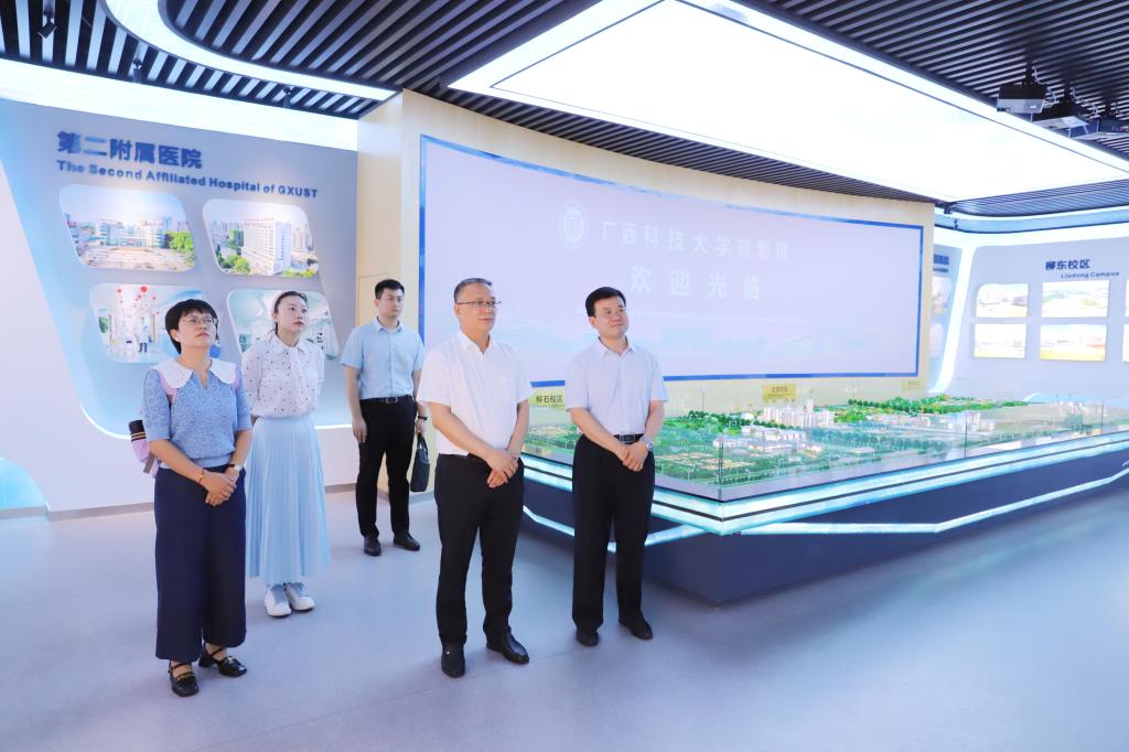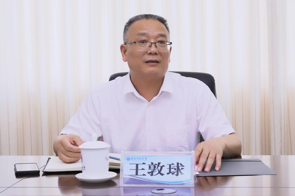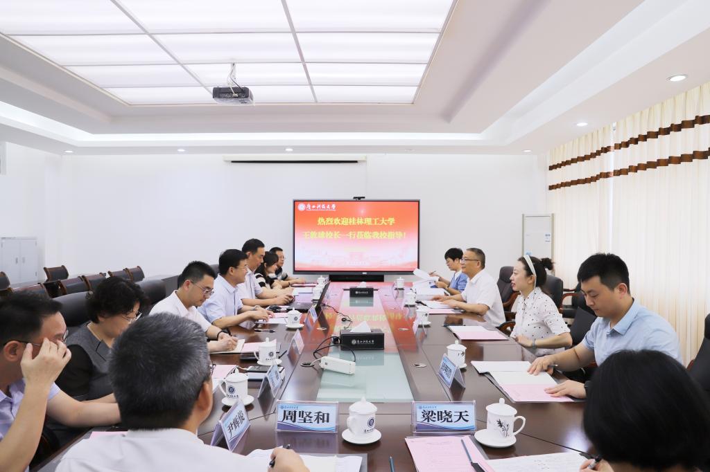 6月16日,桂林理工大学党委副书记、校长王敦球一行4人到学校考察调研。调研座谈会在文昌校区办公楼5-1会议室举行。学校党委书记赵君,学校党委常委、副校长徐武彬出席座谈会,会议由赵君主持。