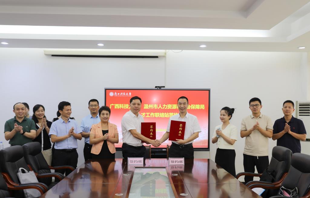 会上,温州市人社局与学校签订了“高校人才工作联络站”协议书并举行了授牌仪式。学校将以“高校人才工作联络站”的设立为契机,加快推进供需对接,进一步深化友谊、加强联系,在人才培养、科研创新、校企合作等方面,深化交流互信,实现共建、共享、共赢。