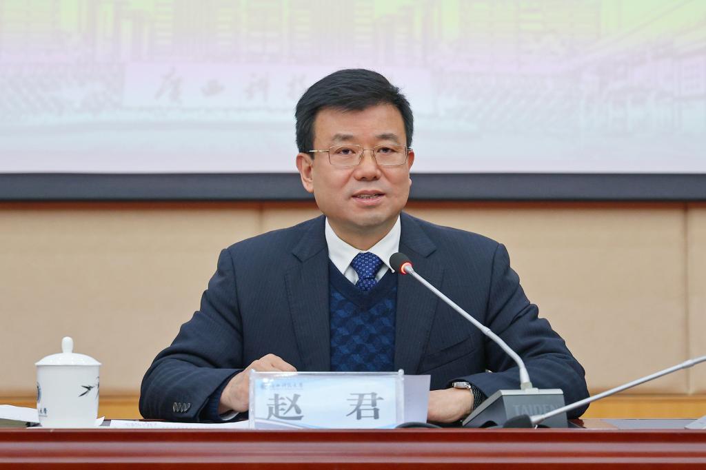 学校党委书记赵君强调,要始终坚持办学育人正确政治方向,牢牢把握旗帜鲜明讲政治这一根本要求抓落实。坚持和加强党对学校的全面领导,始终把党的政治建设摆在首位,深入贯彻落实习近平总书记对广西重大方略要求和关于教育的重要论述。学校党委常委要带头贯彻执行,确保决策执行不偏向、不变通、不走样。要坚持党委领导下的校长负责制,坚持民主集中制,坚持党委集体领导与个人分工负责相结合。