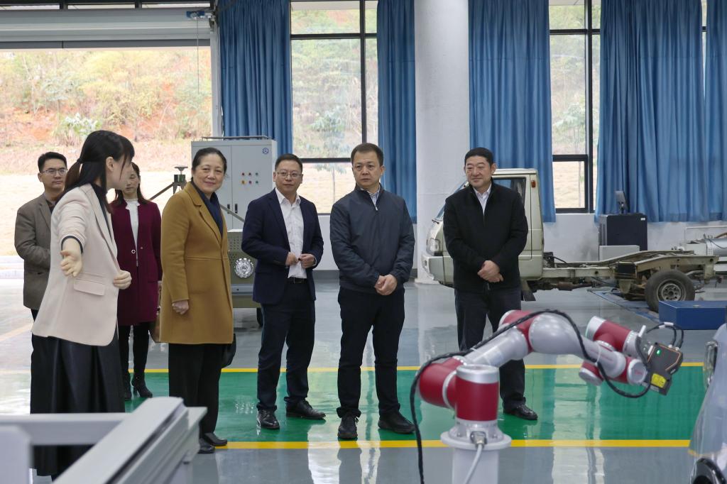 闫炳辰(右2)、刘宝臣(右1)参观教育部智能车辆(制造)与新能源汽车产业学院