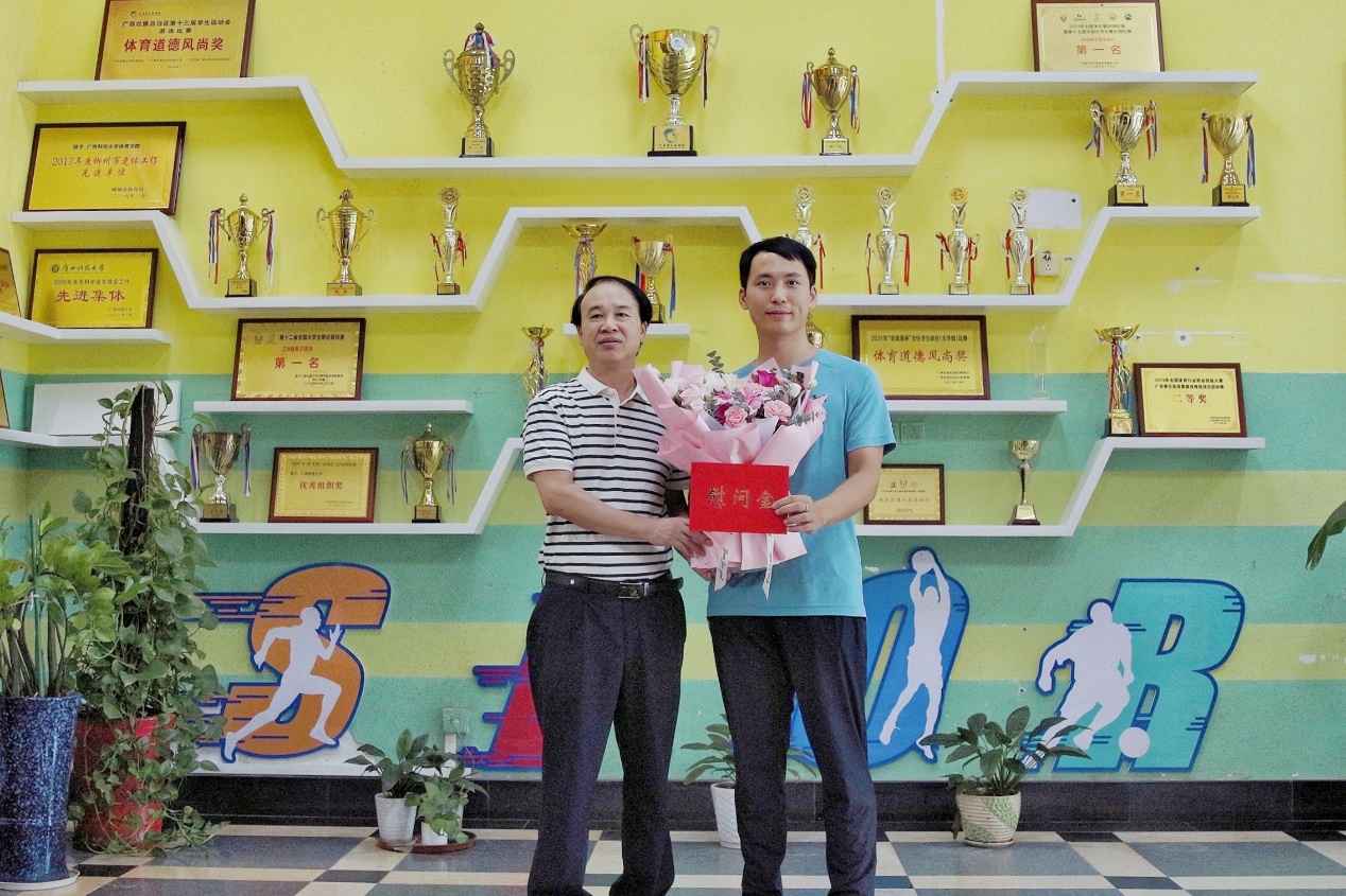 校党委常委、总会计师韦锦义(左)慰问体育学院杜海平老师