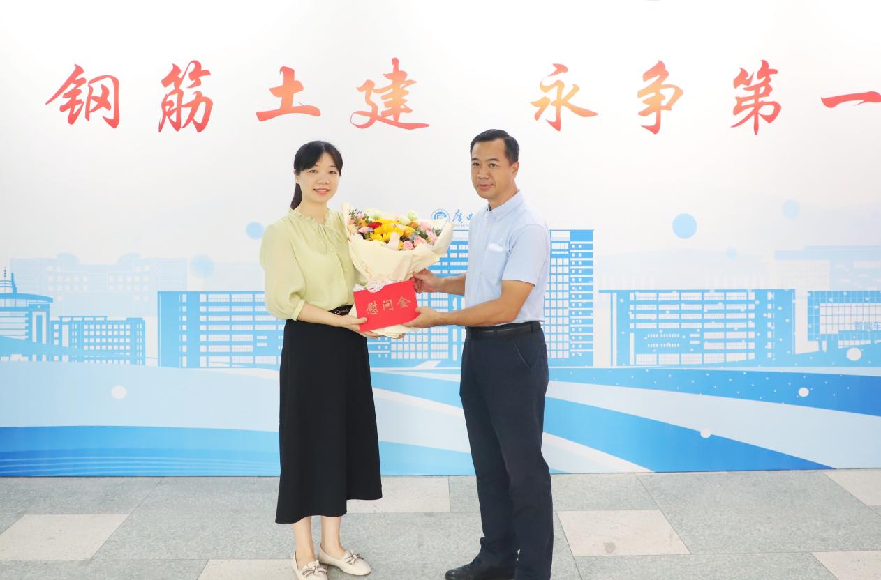 校党委常委、纪委书记符志光(右)慰问土木与建筑工程学院廖灵青老师