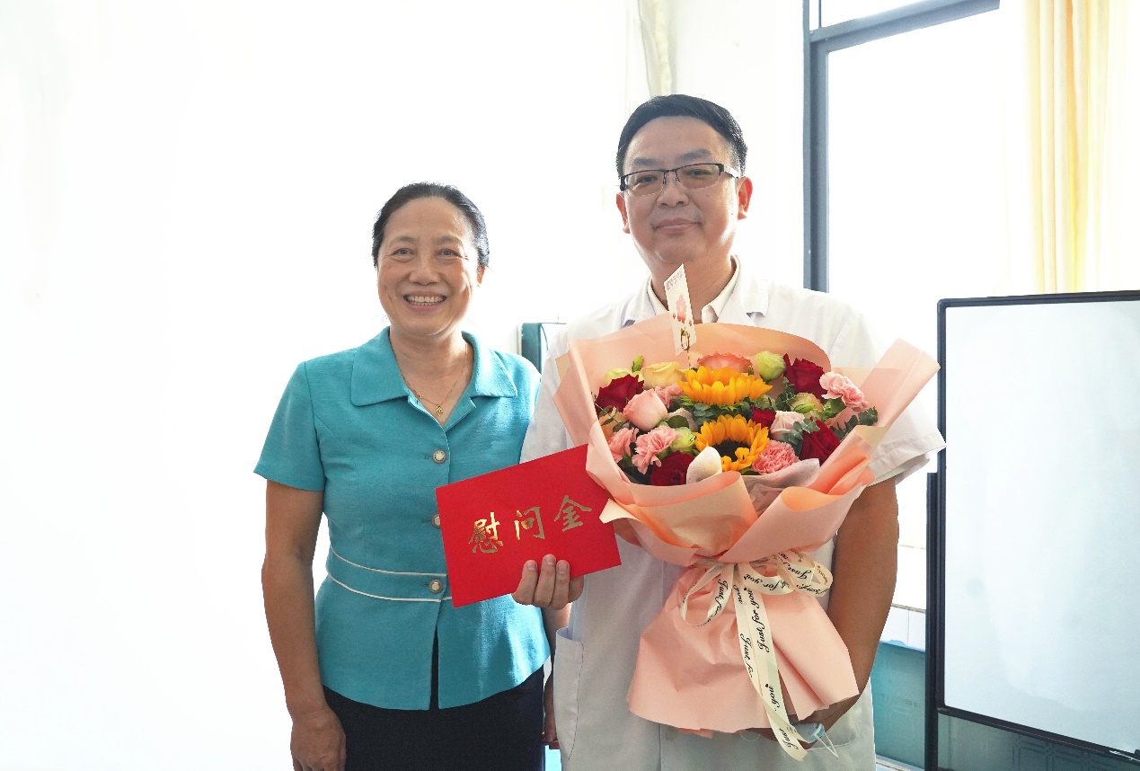 校党委常委、副校长秦小云(左)慰问第一附属医院(第一临床医学院)聂友源老师