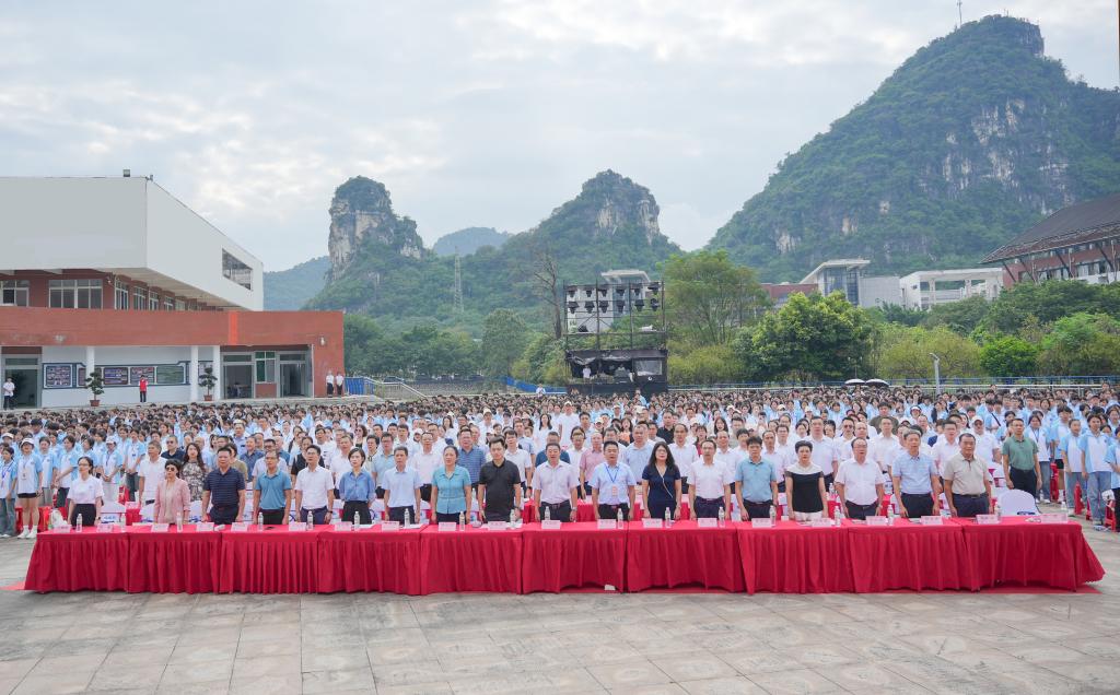 9月21日上午,广西科技大学附属卫生学校建校50周年庆祝大会暨生命科学馆开馆仪式在柳石校区音乐广场举行。广西教育研究院职业教育研究所所长李春鹏,广西科技大学党委副书记、校长刘宝臣,党委常委、副校长秦小云,以及柳州市人力资源和社会保障局、柳州市卫生健康委员会、柳州市教育局、柳州市科学技术协会相关领导出席庆祝大会。