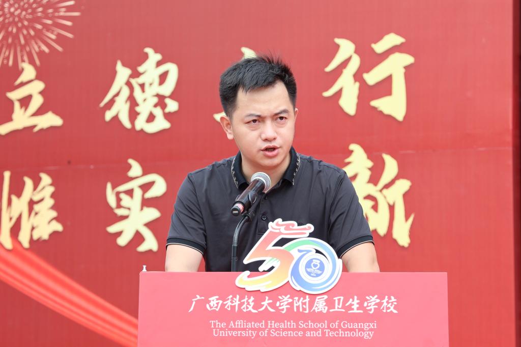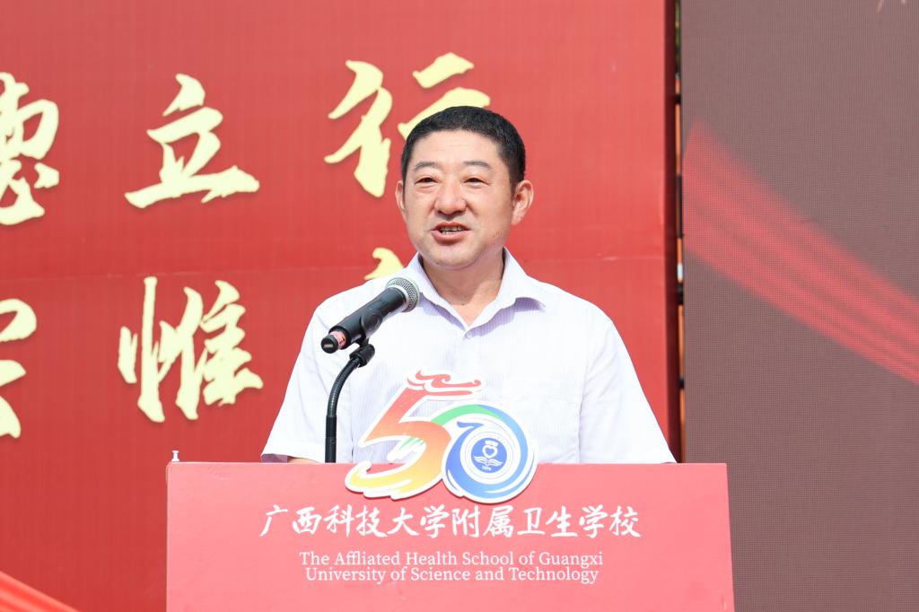 李春鹏代表自治区教育厅在讲话中表示,50周年华诞是附属卫校发展的里程碑,更是赓续教育初心、担当育人使命的新起点。他希望,附属卫校立足历史新方位,启航发展新征程,抢抓现代职业教育体系建设重大机遇,主动融入自治区教育事业发展大局,努力探索一条具有“大学校中校”办学特色的职业教育之路;积极践行“三全育人”,落实“五育”并举,深化医教融合,打造特色专业,加强内涵建设,提升办学水平,在加快高质量发展上争作表率。