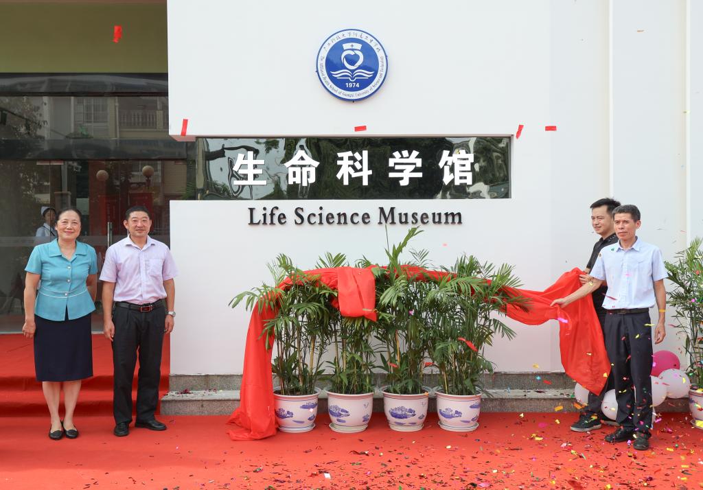 在随后举行的生命科学馆启动仪式上,与会领导、嘉宾同时启动机关,“开启健康新篇 馆藏生命之源”十二个大字缓缓升起;接着,广西教育研究院职业教育研究所所长李春鹏,广西科技大学党委副书记、校长刘宝臣,党委常委、副校长秦小云,柳州市卫生健康委员会党组成员危寿明,共同为生命科学馆揭幕。
