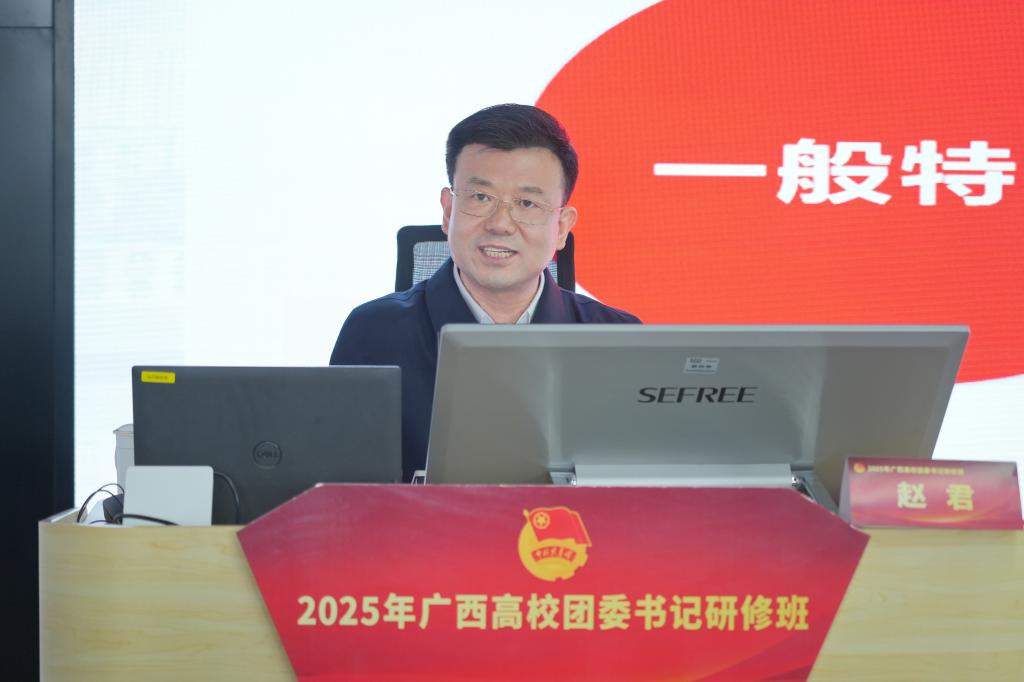 10月28日上午,自治区党委讲师团特聘教授(专家)、学校党委书记赵君受邀为2025年广西高校团委书记研修班学员作题为《“大思政”视域下高校共青团思政引领力提升路径研究》的专题报告。