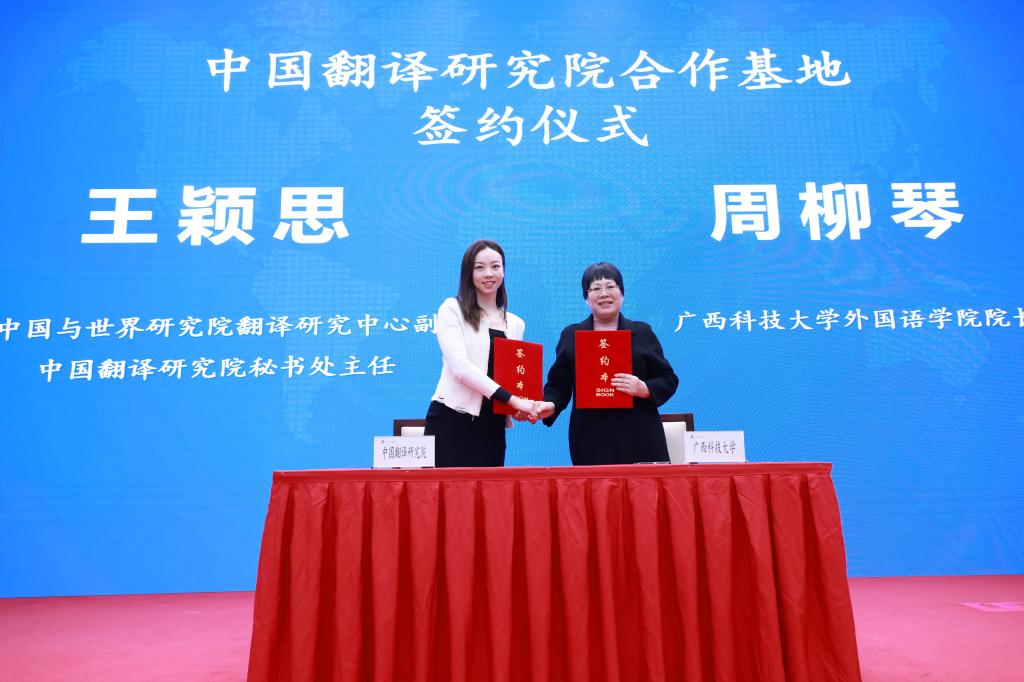 11月22日,第三十七届韩素音国际翻译大赛颁奖典礼在京举办,中国外文局中国翻译研究院与广西科技大学现场签署战略合作协议并共建基地。中国外文局副局长、全国翻译专业学位研究生教育指导委员会主任委员于涛、中国翻译研究院秘书处主任王颖思、广西科技大学外国语学院院长周柳琴等领导嘉宾出席签约仪式。