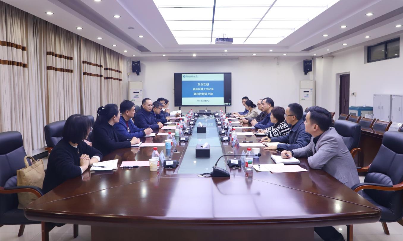 11月27日下午,桂林医科大学党委常委、纪委书记韦政权率队到访我校,围绕纪检监察相关工作开展调研交流。座谈会在文昌校区办公楼6—1会议室举行。学校党委常委、纪委书记符志光出席并主持会议。