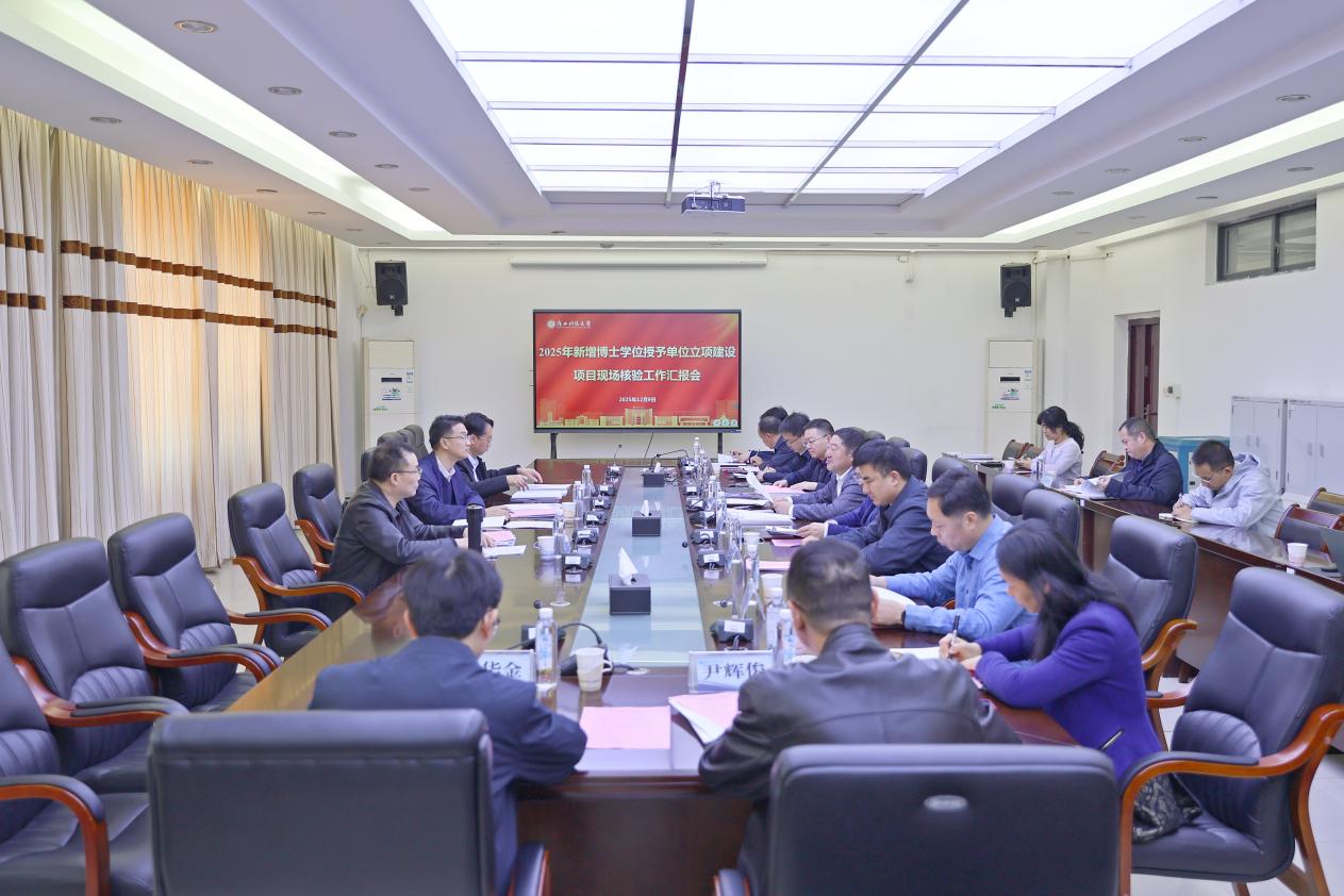 12月9日下午,自治区教育厅专家组一行3人到我校,开展2025年新增博士学位授予单位立项建设项目现场核验工作。核验工作会议在文昌校区办公楼6—1会议室召开。学校党委副书记、校长刘宝臣出席会议。
