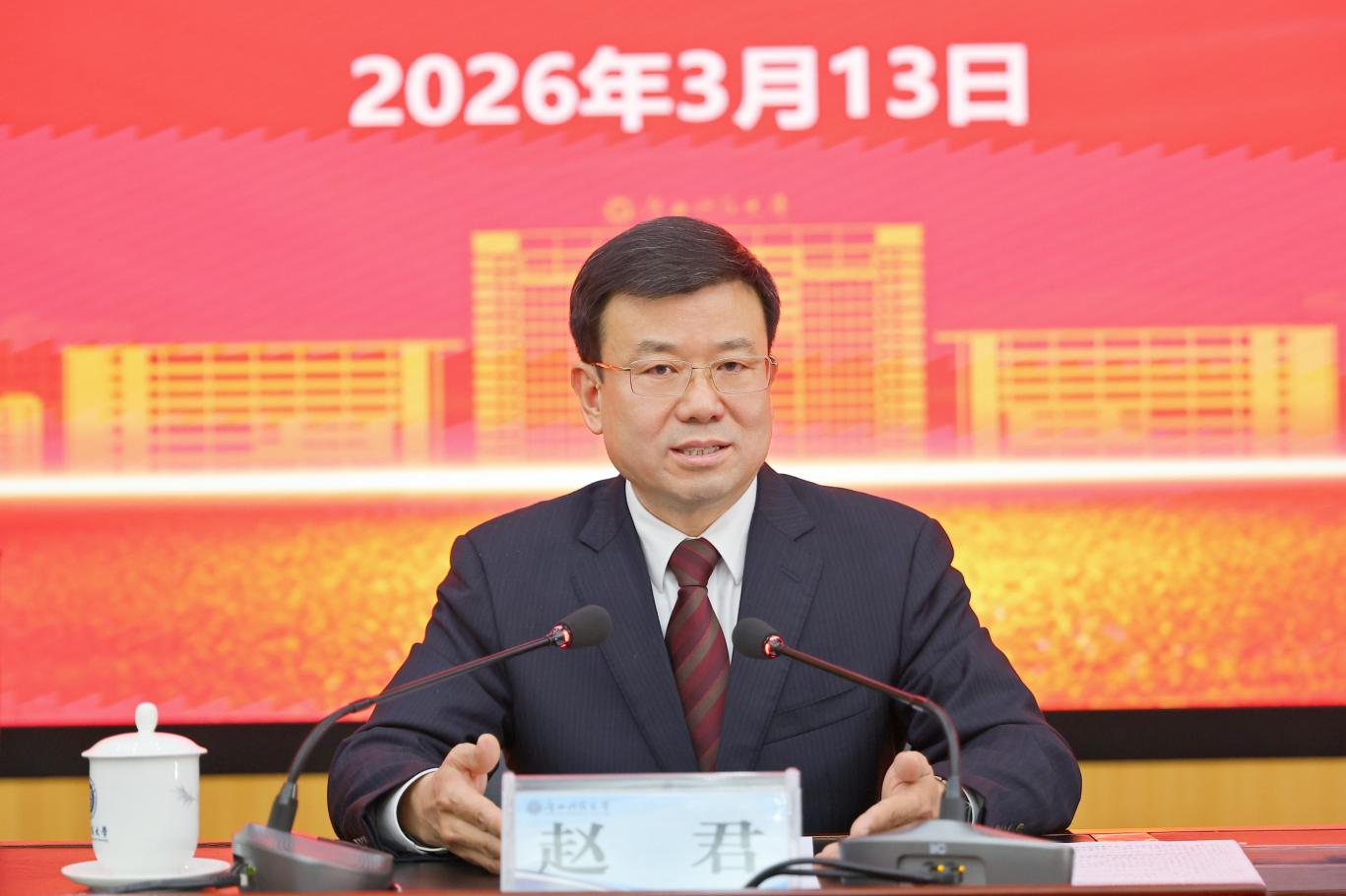 赵君强调,2026年是“十五五”发展规划开局之年、深入实施学校“1256”总体发展战略的攻坚之年、决胜博士学位授予单位建设的关键之年。全校上下要以更高站位、更宽视野、更强担当推进从严管党治校,为“十五五”开好局起好步,为推动学校高质量发展提供坚强政治保障。一要深入贯彻习近平总书记关于“三个更加”的战略部署,深刻把握新时代高校全面从严治党的使命任务,坚持党性党风党纪一起抓,持之以恒正风肃纪反腐,以彻底的自我革命精神筑牢政治忠诚、守护育人阵地。二要坚决扛起管党治党和办学治校政治责任,层层传导压力、压实各级责任,健全完善权责清晰、运转高效的管党治校体系,以严的基调、实的举措持续净化政治生态,营造全面从严治党新局面新生态。三要以落实党中央和自治区党委巡视反馈意见整改、开展树立和践行正确政绩观学习教育为重要契机抓实作风建设,紧盯重点领域和关键环节强化监督,坚决纠治形式主义、官僚主义,以作风大转变带动工作效能大提升、事业大发展。四要把党的全面领导落实到办学治校全过程、各方面,坚持党委领导下的校长负责制,推动党建与人才培养、科学研究、社会服务等中心工作深度融合,以全面从严治党新成效保障学校“十五五”高质量发展行稳致远。