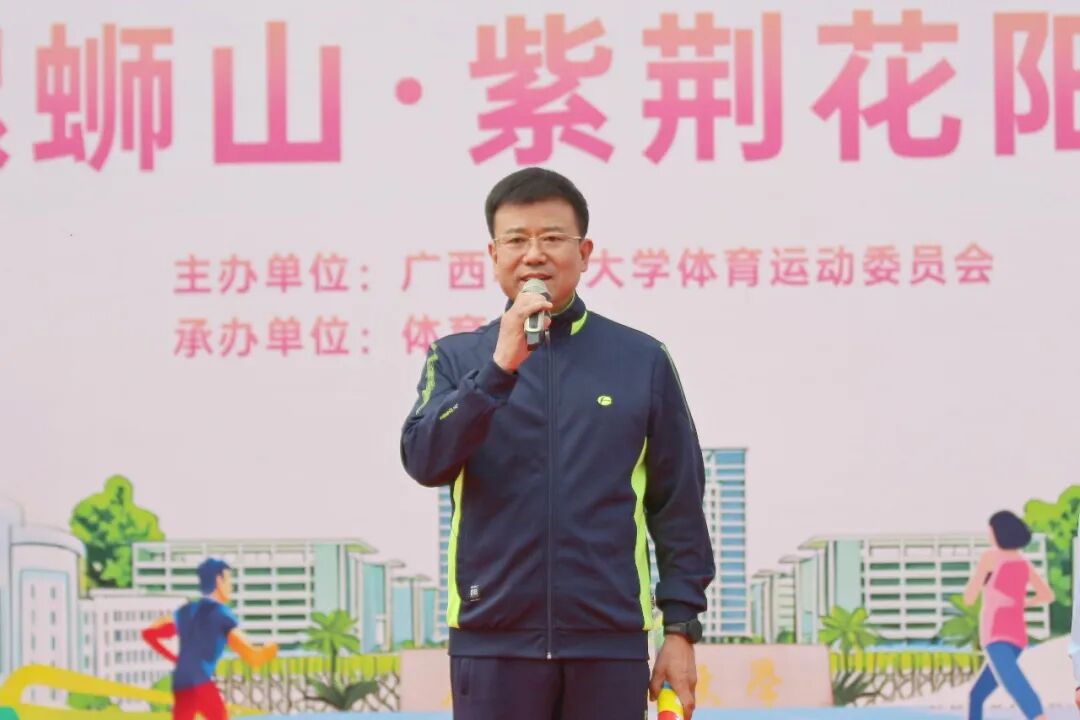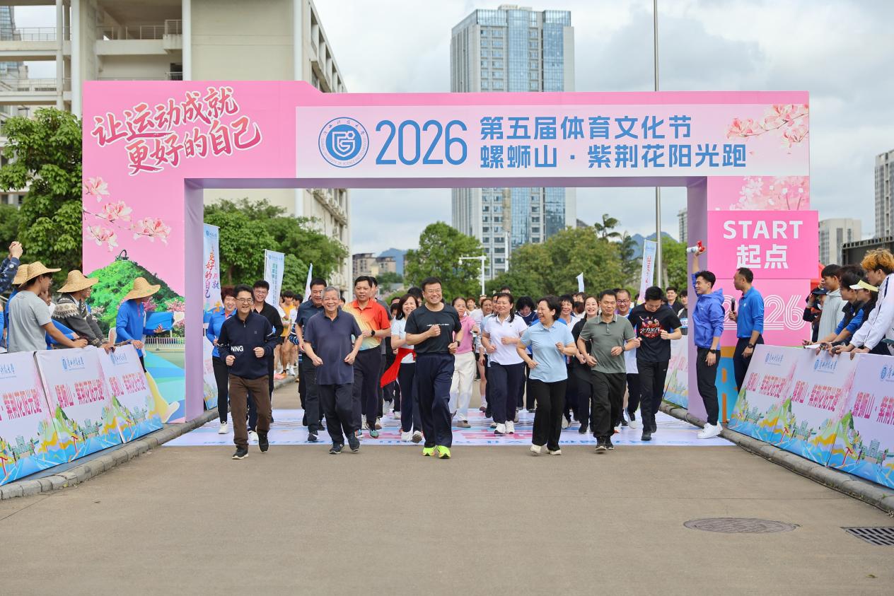 3月31日下午,学校第五届体育文化节开幕式暨螺蛳山·紫荆花阳光跑活动在文昌校区宗元南广场举行。学校党委书记赵君,党委副书记张发钦,党委常委、副校长张海英出席活动。各职能部门、二级学院(部)负责人,学校体育运动委员会委员,参赛运动员、裁判员、师生员工代表参加开幕式。