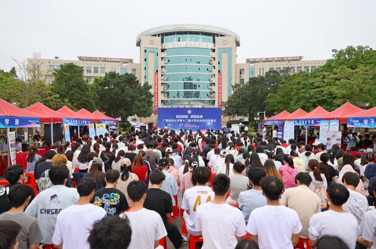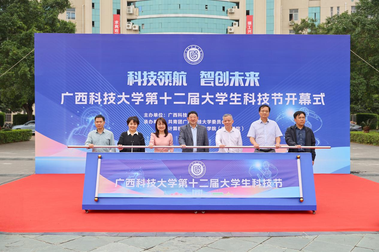 4月7日下午,学校第十二届大学生科技节开幕式在文昌校区同心圆广场举行。学校党委副书记、校长刘宝臣,党委副书记张发钦,党委常委、副校长邓朗妮,广西人工智能学院院长杨巨成,柳州市科技局副局长钟丽娜,柳州市科协副主席杨喆等领导嘉宾出席开幕式。