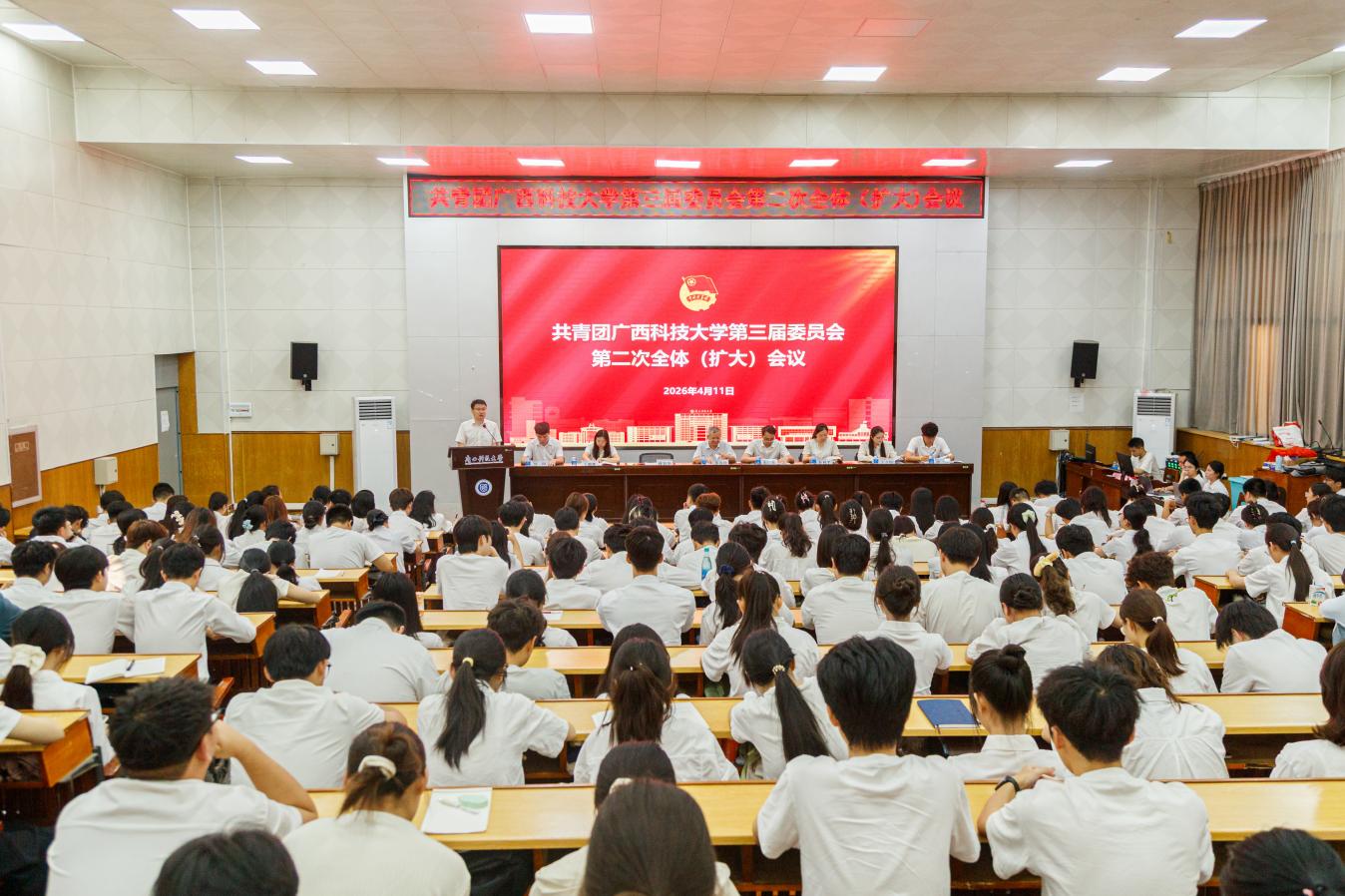 学工部、研工部负责同志,共青团广西科技大学第三届委员会全体委员,团属校级学生组织及各二级学院(部)团学干部代表参加会议。