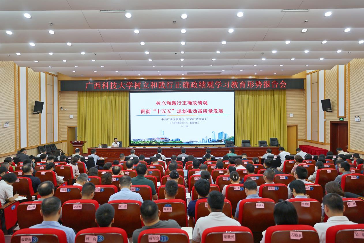 4月16日,学校在文昌校区二楼多功能报告厅举办树立和践行正确政绩观学习教育形势报告会,邀请自治区党委党校吕勇教授作形势报告。