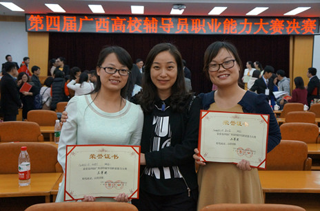 3月24-25日,由自治区高校工委、教育厅主办的第四届广西高校辅导员职业能力大赛复赛、决赛在广西大学隆重举行。经过激烈角逐,我校生化学院辅导员康会茹和医学院护理系辅导员胡建芳分别获得二等奖和三等奖的优异成绩。