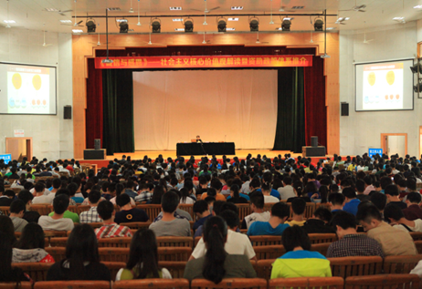 讲座分为三部分,社会主义核心价值观解读、当代青年学生如何感恩、资助政策体系推广和介绍。