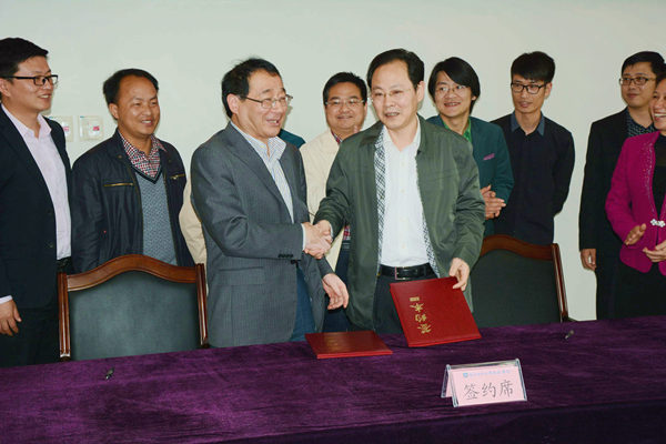 王珉院长一行参观了落户学院的柳州市大学生创业孵化园、艺术与设计系实验室与实训中心,对鹿山学院的学生创业工作、艺术设计类人才培养与实训教学给予了高度评价。随后,双方就校际合作项目开展洽谈,并现场签订合作协议,使“国家旅游商品研发中心联合研发基地”成功落户我校。广西科技大学副校长、 鹿山学院院长李利军、鹿山学院党委书记韦鸿鹏、党委副书记、纪委书记何颖梅出席签约仪式。