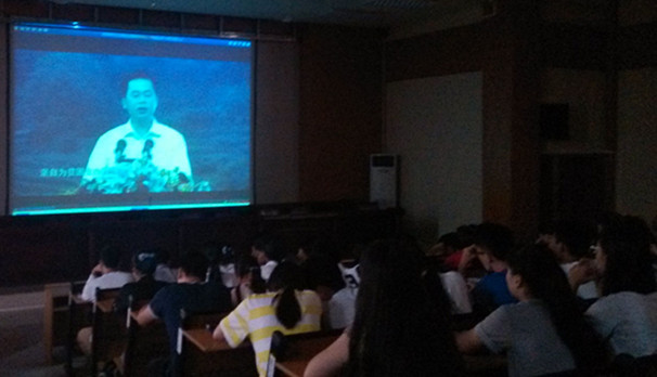 9月22日下午5:30,我校医学院学团干部骨干于1310报告厅观看了莫振高同志先进事迹报告会。此次课程由医学院团委书记蓝娟主持。在观看报告会前,蓝娟老师就莫振高同志生平事迹做了简要介绍。她希望通过此次观看,同学们能深刻领悟“严以修身、严以用权、严以律己,谋事要实、创业要实、做人要实”的先进思想,并希望同学们以此次活动为契机,开展形式多样的研讨、座谈等实践活动,切实贯彻“三严三实”的先进要求。