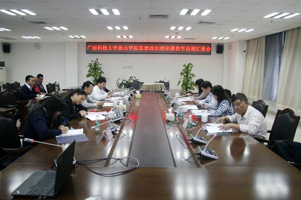 为深入贯彻落实教育部《高等学校思想政治理论课建设标准》(暂行)文件精神,切实加强对全区高校思想政治理论课教育教学工作的检查和指导,2015年11月4日下午,以玉林师范学院党委书记李继兵为组长的全区高校思政课教学巡视组一行4人到鹿山学院检查指导工作。广西科技大学党委副书记、纪委书记张正义,学院党委书记韦鸿鹏,副院长韦兰用,党委副书记、纪委书记何颖梅、思想政治理论课教学科研部副主任唐春兰等出席了汇报会。