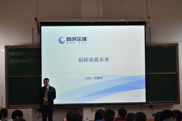3月22日晚 ,管理学院邀请柳工路创企业管理咨询有限责任公司毛清华总经理,在5北103教室热烈开展了关于创新创业思考的《创新成就未来》主题讲座。