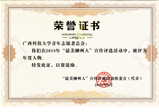 我校青年志愿者总会当选“最美柳州人”荣誉称号,是柳州市社会各界对我校志愿服务工作的肯定,是我校青年志愿者践行社会主义核心价值观的具体体现。