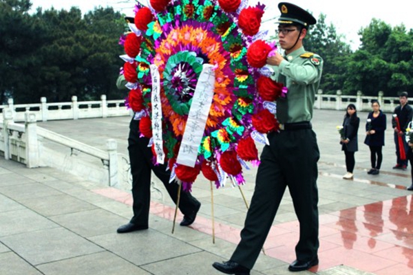 仪式在一片庄严中进行,全体人员手持菊花默哀三分钟,刘代朝老师代表吟诵悼词,蒋智华老师敬献花圈,表达着对烈士们深深的缅怀与敬意之情。仪式在全体人员行鞠躬礼后结束。