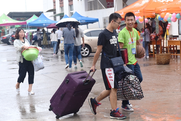 学院迎新工作从9月8日开始启动,各单位教职工及学生志愿者、学生组织都为迎新工作进行了充足的准备:院团委学生会设置了提前迎新点,引导、服务提前报到的新生;校园内布置好了色彩鲜艳的迎新横幅和宣传板,营造热情、温馨的氛围;报到当日,除了报到注册处、现场缴费区、绿色通道之外,学院还设置了学生干部和党员服务点、医疗点、广播咨询站,以便新生在报到过程中更及时了解报到须知;后勤基建部在校园内设置了便民取水点,为忙碌的新生及家长提供饮用水;为了应对降雨天气,院团委还临时购置了一批雨具为新生提供方便……校园内最引人注目的除了新生,当数热情的学长学姐,他们分工明确,各自忙碌在校园内外:青年志愿者协会及学生会组成的接站队伍一早来到火车站、汽车站为新生接站;各系接待处,身着工作服的各系学生会成员为远道而来的新生及家长们提供帮助,他们冒着雨,却将自己的伞撑给了新生和家长;学生志愿者穿梭于熙熙攘攘的校园内,肩扛手拉帮新生搬运行李、指引道路;传媒中心的同学们向新生及家长发放自制的明信片、地图册和迎新专刊,传递了浓浓的学长情。