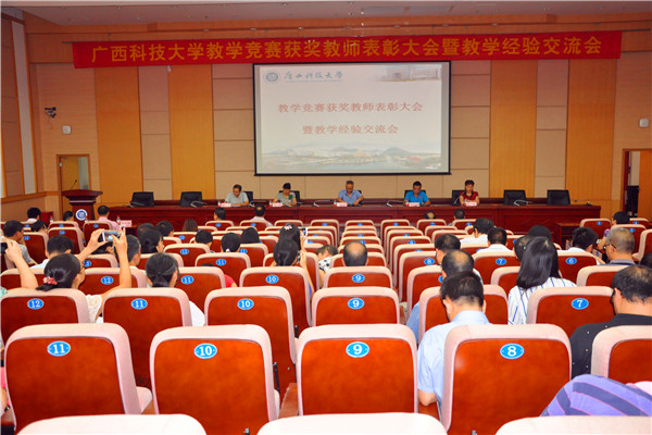 2016年9月23日下午,由我校教师教学发展中心、教务处、人事处联合举办的广西科技大学教学竞赛获奖教师表彰大会暨教学经验交流会在行政楼二楼多功能报告厅隆重举行。大会对2014-2016年度青年教师教学竞赛、优秀主讲教师、“外教社杯”全国高校外语教学大赛、微课教学比赛、广西高校教育教学软件应用大赛、广西高校思想政治理论课教师教学基本功暨“精彩一课”比赛、广西区高校大学心理健康教育课教学比赛七大项共62位教师做出了表彰。李创第副校长、教师发展中心领导和工作人员、人事处领导、教务处领导、工会领导、各教学单位分管教学副院长(副主任)、各系(教研室)主任、各实验教学中心主任、各教学单位教师代表、2016年新入职教师共100人参加了会议。