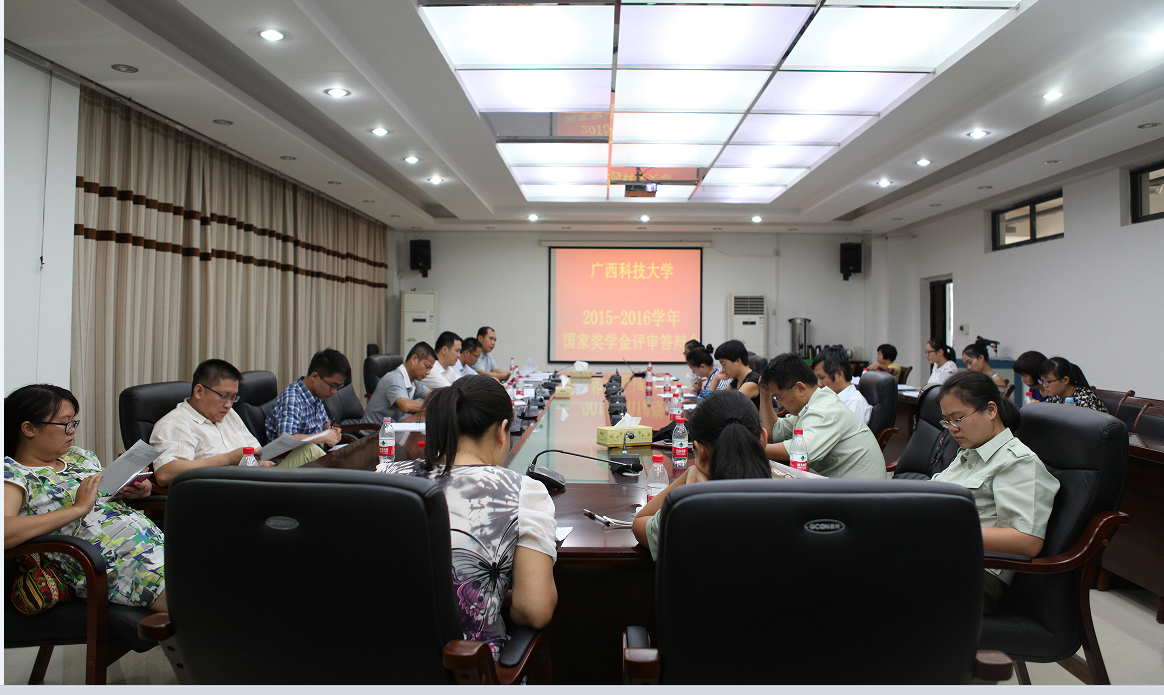 根据自治区教育厅《关于做好2015-2016学年度普通高等学校国家奖学金评审及材料报送等有关工作的通知》(桂教资助〔2016〕26号)及学校《广西科技大学国家奖学金管理暂行办法》(校发[2015]54号)等文件要求,为做好我校2015-2016学年度国家奖学金的评审推荐工作,我校资助中心于2016年9月27日分别在柳石校区302会议室、东环校区行政楼6-1会议室召开2015-2016学年国家奖学金评审答辩会。参加此次会议有校长助理覃远生、党委学生部(处)长谭铁军、各学院副书记及国家奖学金候选学生,评审会由学生工作副部(处)长赵世英主持。