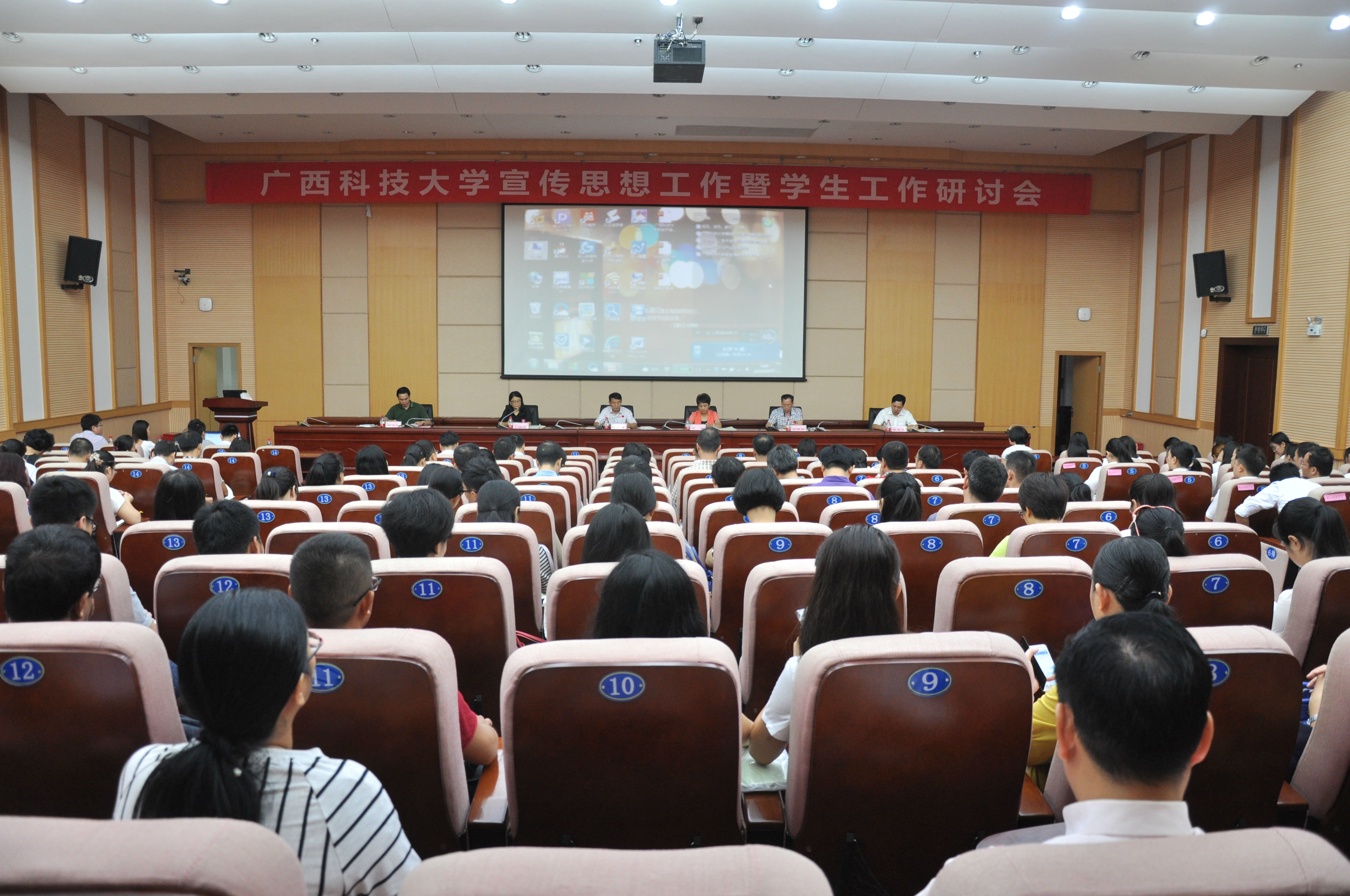 10月27日上午,广西科技大学宣传思想工作暨学生工作研讨会开幕式在行政楼多功能报告厅隆重举行。校党委副书记、纪委书记张正义,党委副书记覃萍出席开幕式,中山大学党委宣传部副部长王丽霞受邀参加开幕式并做专题讲座。宣传部、学工部、团委、各二级单位分管宣传工作领导和负责宣传工作的人员、全体专职学生工作干部、马克思主义学院部分教师参加了开幕式。开幕式由党委宣传部部长杨建超主持。