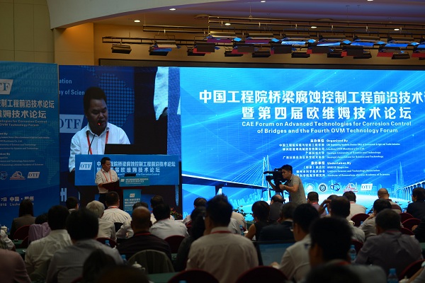 10月15日,由中国工程院环境与轻纺工程学部、柳州欧维姆机械股份有限公司、广西科技大学等单位联合主办,《桥梁》杂志社、柳州市科学技术协会、中国科学院海洋研究所承办的第四届欧维姆技术论坛在柳州隆重召开。论坛以“中国制造2025”国家战略下的桥梁工程发展以及桥梁腐蚀控制前沿技术”为主题,邀请了海内外14个国家的300多名专家和学者参加。中国工程院院士郑皆连,中国工程院院士侯保荣,同济大学桥梁工程系主任葛耀君,上海市城市建设设计研究总院总工程师、副院长周良等国内专家及日本科学技术研究所代表成井信,印度S. N. Bhobe 联合私人有限公司总经理、TPF 公司董事长阿达尔·达莫达尔·多比等国外专家分别以《川藏铁路适应性桥梁研究》、《我国桥梁腐蚀状况及两种最新腐蚀防护技术》、《基于 OTC/PTC 技术的悬索桥主缆系统防腐及耐久性探讨》、《国内外桥梁技术创新和工程创造展望》、《高性能混凝土在桥梁工程中的应用探索》、《智能制造助推中国桥梁产业革新与发展》、《日本斜拉桥的最先进技术》、《印度基建发展趋势》为题做了非常精彩的学术报告。