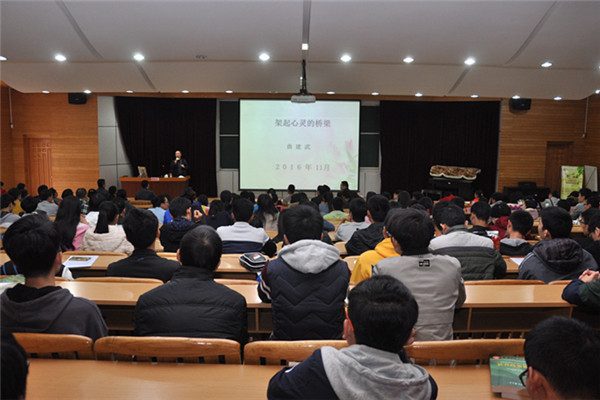 11月11日下午,应我校邀请,大连海事大学博士生导师、学生辅导员曲建武教授在东环校区第四教学楼4阶4教室为我校辅导员作题为“架起心灵的桥梁”的主题讲座。全体学生工作干部、各学院辅导员、思政理论课教师及学生干部代表,柳州市兄弟院校辅导员代表参加讲座。讲座由学生工作部(处)长谭铁军主持。