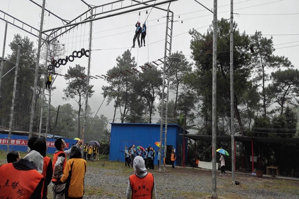 早晨七点半,在晨光中,伴随着淅淅沥沥的秋雨,辅导员队伍风雨无阻,按时准点出发,来到培训基地。培训在教练洪亮的口号和军姿中开始了。随着响亮的报数声,全体队伍分成了红黄蓝绿橙五支队伍,队员们手拉手走到一起组成了各自的队伍,开始了一天的挑战。每个团队选出了大家信任的队长,为自己的团队设计了队名、口号、还有队歌,“我们叫霹雳战队… … 我们叫… … 我们的口号是超越自己!… … ”大伙儿充满力量的呐喊和承诺,拉开了培训的帷幕。本次为大家担任总教练的是西点学校的卢壮立老师。卢老师从心理学、传统哲学等角度为大家讲述了团结、爱等的重要性。全体团队先后开展了“巨人鞋”、“天翻地覆”两项活动,项目看似简单,却无时无刻不在挑战着每个团队成员之间的团结能力、协作能力甚至团队整体的智慧。此次培训,解决午饭的问题对队员们来说同样不简单,西点学校特别设置了自助烧饭环节,从拾柴生火、洗菜切菜到饭菜上桌,全部由队员们亲力亲为,各自分工、相互合作,短短的1个小时午饭时间在欢乐声中愉快地度过。非常值得一提的是,下午的高空项目,全部项目均在高达12米的高空中完成,有“跳跃”、“双人走钢丝”、“双人过桥”,每个项目都惊心动魄,极具挑战,但是全体队员们都没有退缩,在挑战面前,不畏恐惧,勇敢的上前,完成了挑战,超越了自己,这其中缺不了队友的鼓励,少不了团队的共同付出,在高空场地上,时不时传来“加油!我们为你骄傲!”,“不怕!有我们在,尽管上吧!”,“你可以的!… … 好!稳住!”加油声,鼓励声此起彼伏,激励人心。