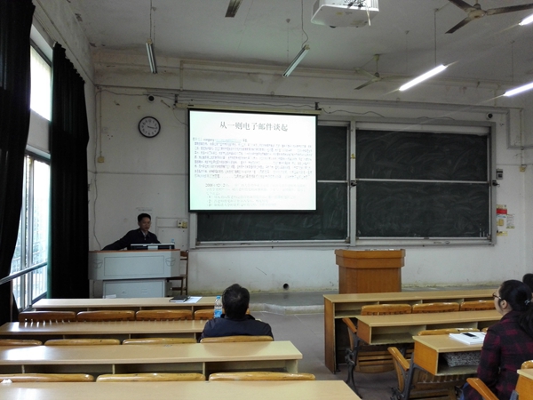 12月6日下午,广西大学数学与信息学院副院长,广西首届高校名师吕跃进教授,在来我校指导青年教师讲课的间歇中,应理学院的邀请在三教101教室作了题为“漫谈为师之道”的报告。理学院全体教师参加了报告会。
