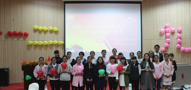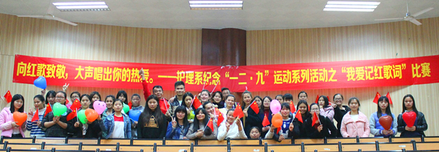 为铭记历史,激励广大青年的爱国激情,发扬一二 · 九运动爱国精神,展现新一代大学生的青春风采,12月11日下午6点,医学院护理系在第四报告厅召开“一二 · 九”运动系列活动“我爱记红歌词”比赛。本次比赛由护理系正能量传播基地——护理系学生党员之家承办,护理系团总支书记江芸玲、学生党支部书记胡建芳、2016级班主任于亚婷出席了活动。