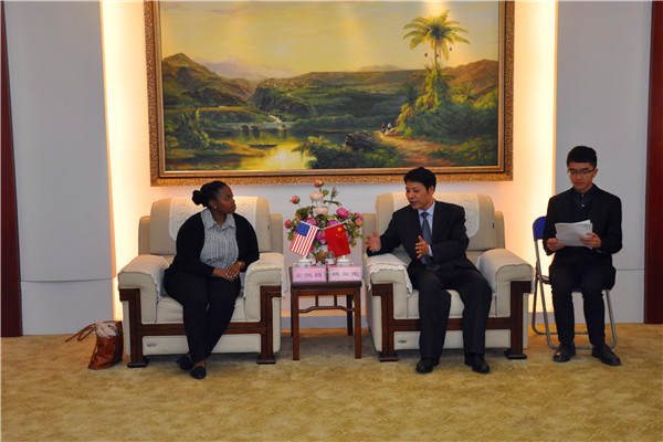 12月12日下午,美国驻广州总领事馆副总领事(McCarey)麦凯莉女士及其助理杨婉媚到我校进行文化与合作方面的访问与交流,受到我校姚金光副校长的热情接待。国际合作与交流处处长(国际教育学院院长)邓杏华、党委办公室、校长办公室副主任卢志平、参加了交流座谈会。座谈会在学校行政办公楼4-2会议室进行。