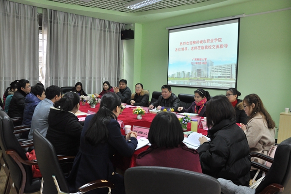 3月16日下午,柳州城市职业学院副院长罗小芳、学工处处长黄春凡等一行10人到我校交流大学生心理健康教育工作,双方在图书馆一楼的大学生心理健康教育中心举行座谈交流会。校党委副书记覃萍,学工部副部长(大学生心理健康教育中心主任)陈志波、社会科学学院(马克思主义学院)副院长郑明怀以及心理健康教育中心专职教师、学院二级心理工作站负责人代表参加会议。