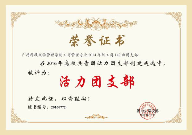 日前,校团委从团中央学校部获悉,由团中央学校部组织开展的高校共青团“活力团支部”创建遴选活动结果揭晓。我校管理学院工商管理142班团支部、财经学院金融141班团支部在12000余个参加评选的团支部中脱颖而出,被评为全国高校“活力团支部”。