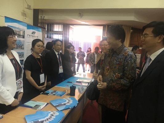 4月19日,广西教育展代表团第二站去到了印度尼西亚城市万隆的玛拉拿达基督教大学,受到了该校领导和师生的热烈欢迎。当天上午,邓杏华处长还应邀参加了广西教育论坛,并向参加论坛的印尼各高校代表热情推介我校。