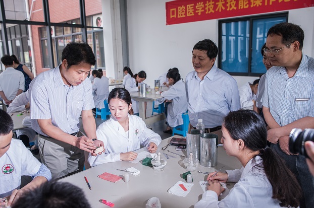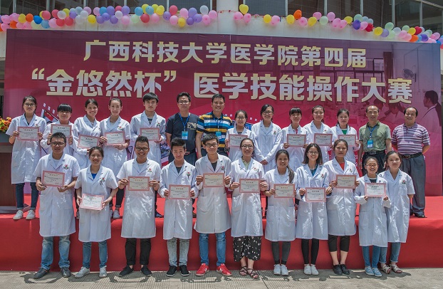 为了强化专业技能,营造良好的学习氛围,激发学生学习兴趣,使学生将理论知识、技能训练、职业道德与职业意识有机结合,给大学生一个展示自我的平台,医学院公共卫生和医学技术系于5月13日在柳石校区医学实训中心举办第四届“金悠然杯”医学技能操作大赛。学校副校长兼医学院院长姚金光,教务处副处长徐兆学,医学院党委书记黄超、副书记副院长刘莉莉、副院长义家运,深圳市金悠然科技有限公司人事总监黄红、培训经理蔡娟等出席了开幕式。